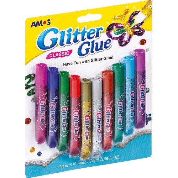 KLEJ Z BROKATEM AMOS 10,5ml*10 KOLORÓW Amos