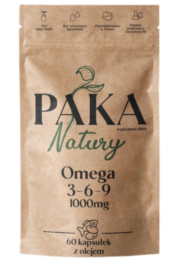 Paka Natury Omega 3-6-9 1000 mg ALA EPA DHA 60 kapsułek miękkich to suplement diety stworzony z myślą o osobach pragnących wzbogacić swoją codzienną dietę o cenne kwasy tłuszczowe. Produkt ten łączy trzy rodzaje omega: 3, 6 i 9, pochodzące z naturalnych źródeł, takich jak olej lniany, rybi i słonecznikowy.