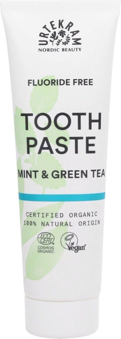 URTEKRAM pasta do zębów z miętą i zieloną herbatą bez fluoru, 75 ml