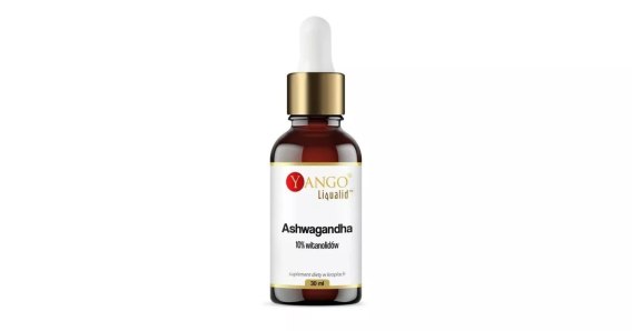 Yango Ashwagandha 10% witanolidów krople 30 ml to suplement diety w formie płynnych kropli zawierający ekstrakt z ashwagandhy standaryzowany na 10% witanolidów, charakteryzujący się wysoką koncentracją składników aktywnych i precyzyjnie określonym stężeniem. Produkt wyróżnia się wygodną formą płynną i wykorzystaniem ashwagandhy, znanej również jako witania ospała, ze standaryzacją na 10% witanolidów zapewniającą stałą zawartość kluczowych substancji bioaktywnych.